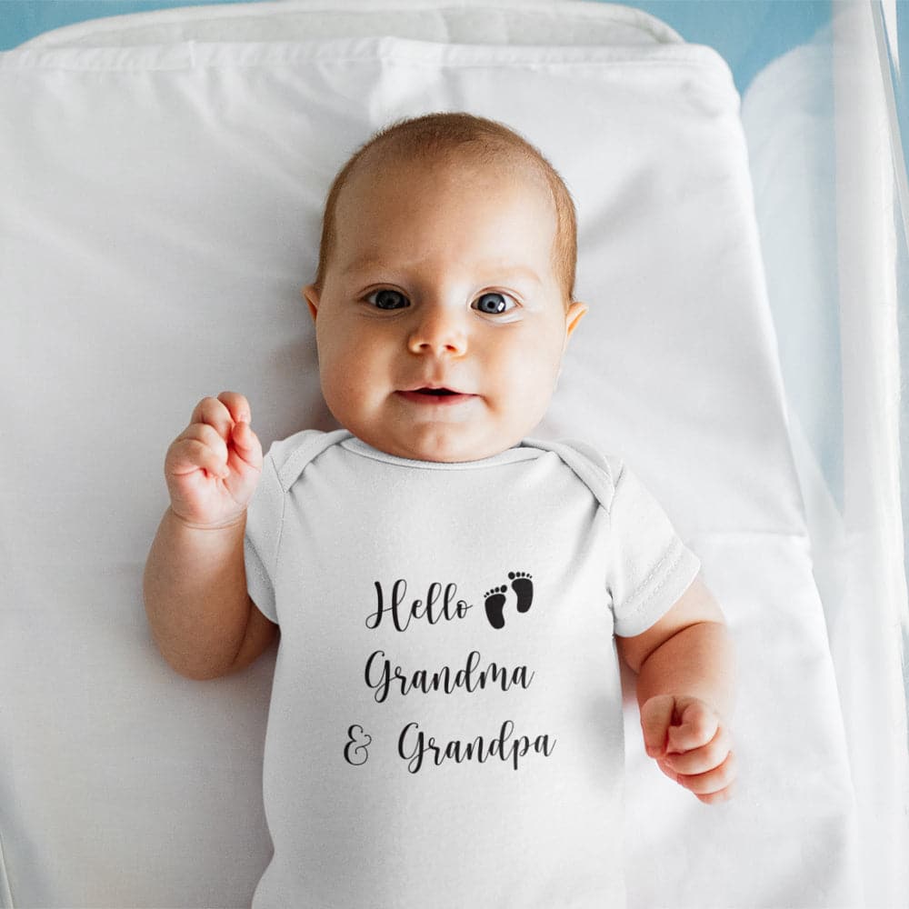 Birth Reveal To Grandparents Onesie - Pregnancy Announcement Onesie - Hello Grandma And Grandpa Onesie - Cute Baby Footprints Onesie - Grandparent Baby Clothes