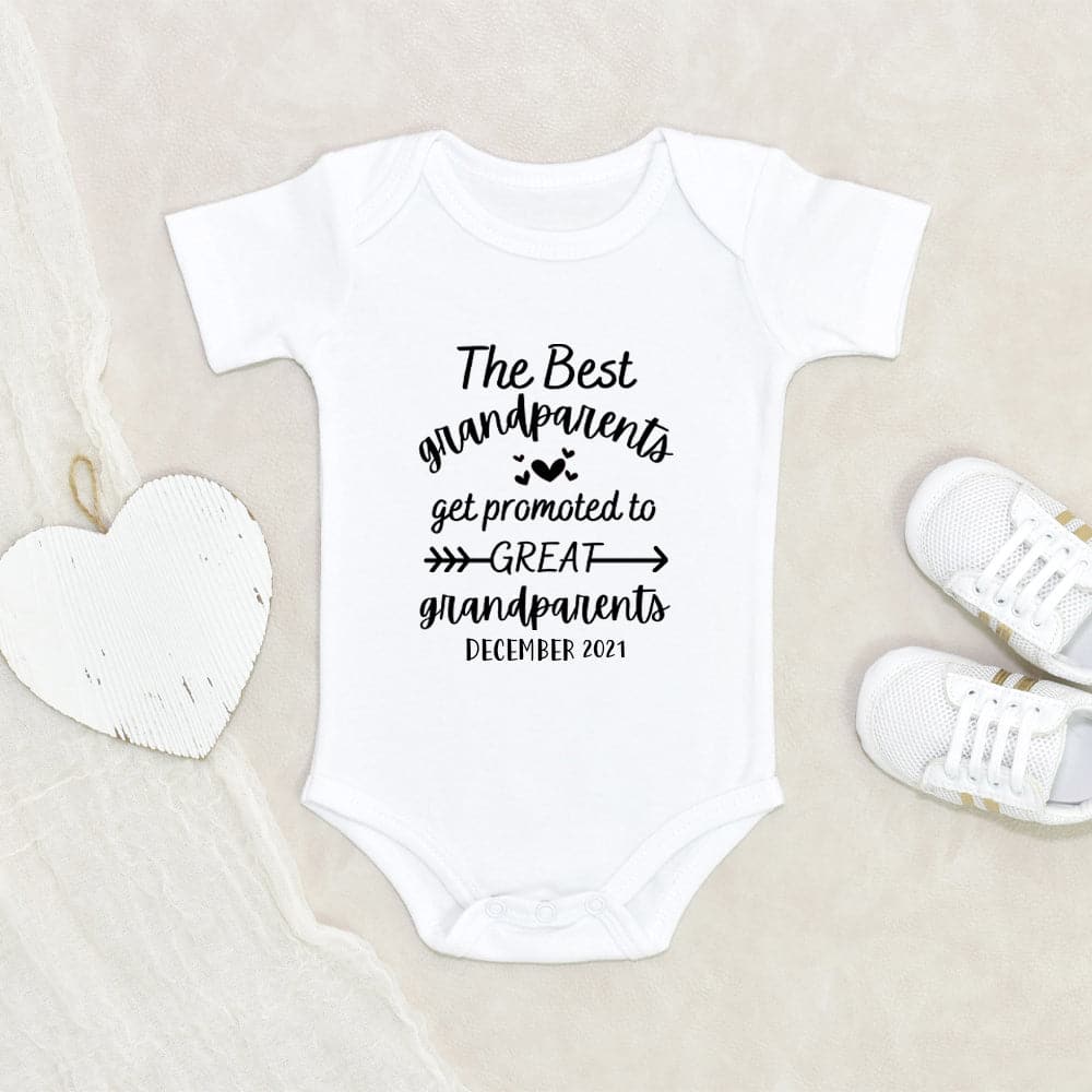Custom Baby Onesie Pregnancy Announcement Onesie The Best Grandparents Get Promoted To Great Grandparents Personalized Baby Onesie Newborn Baby Onesie