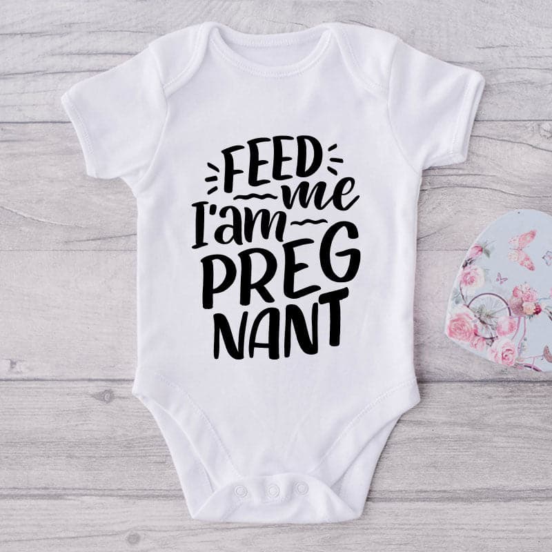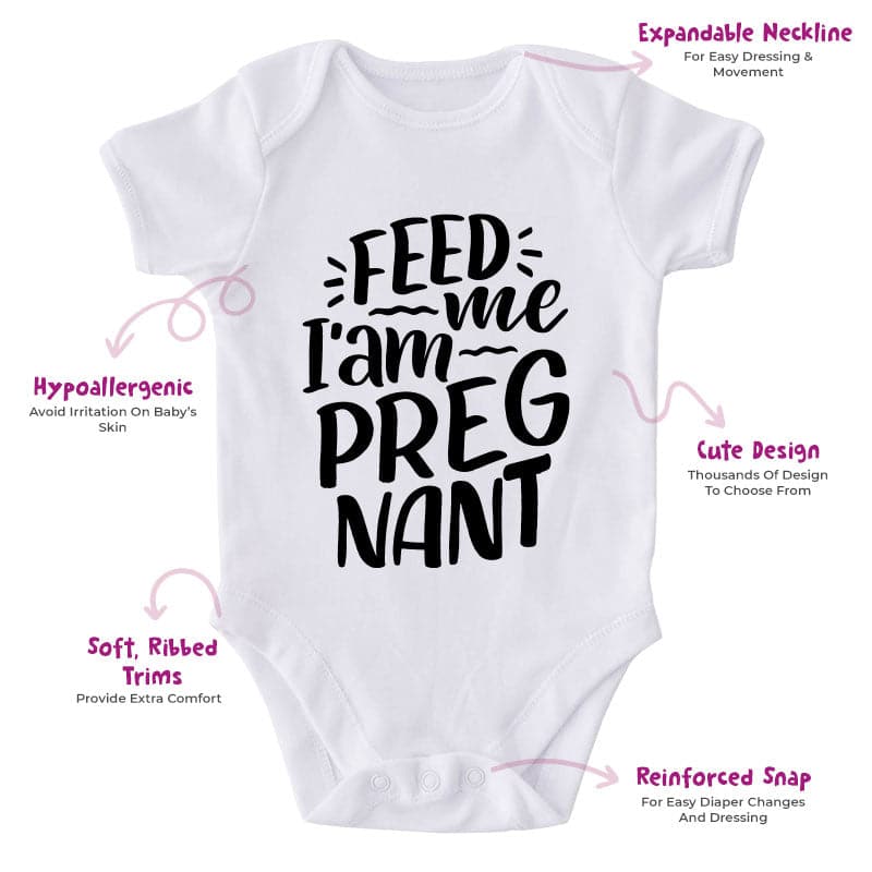 Feed Me I Am Pregnant-Funny Onesie-Best Gift For Babies-Adorable Baby Clothes-Clothes For Baby-Best Gift For Papa-Best Gift For Mama-Cute Onesie