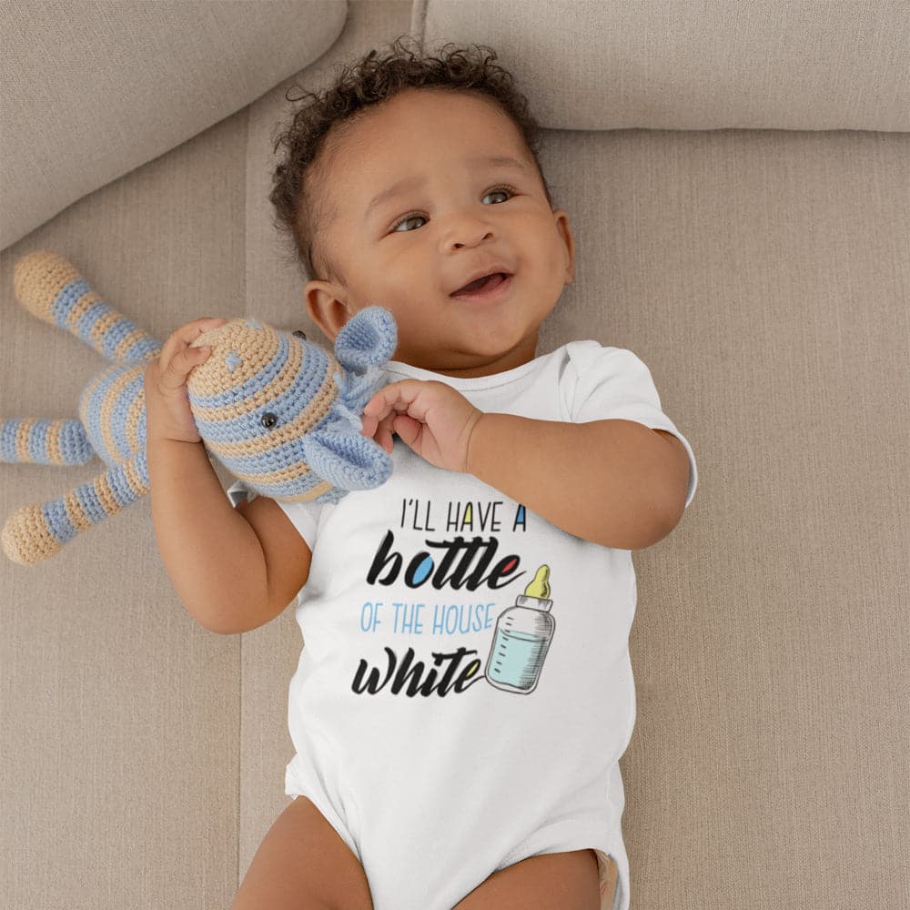 Funny Baby Clothes - Cute Wine Bottle Baby Onesie - I'll Have A Bottle Of The House White Onesie