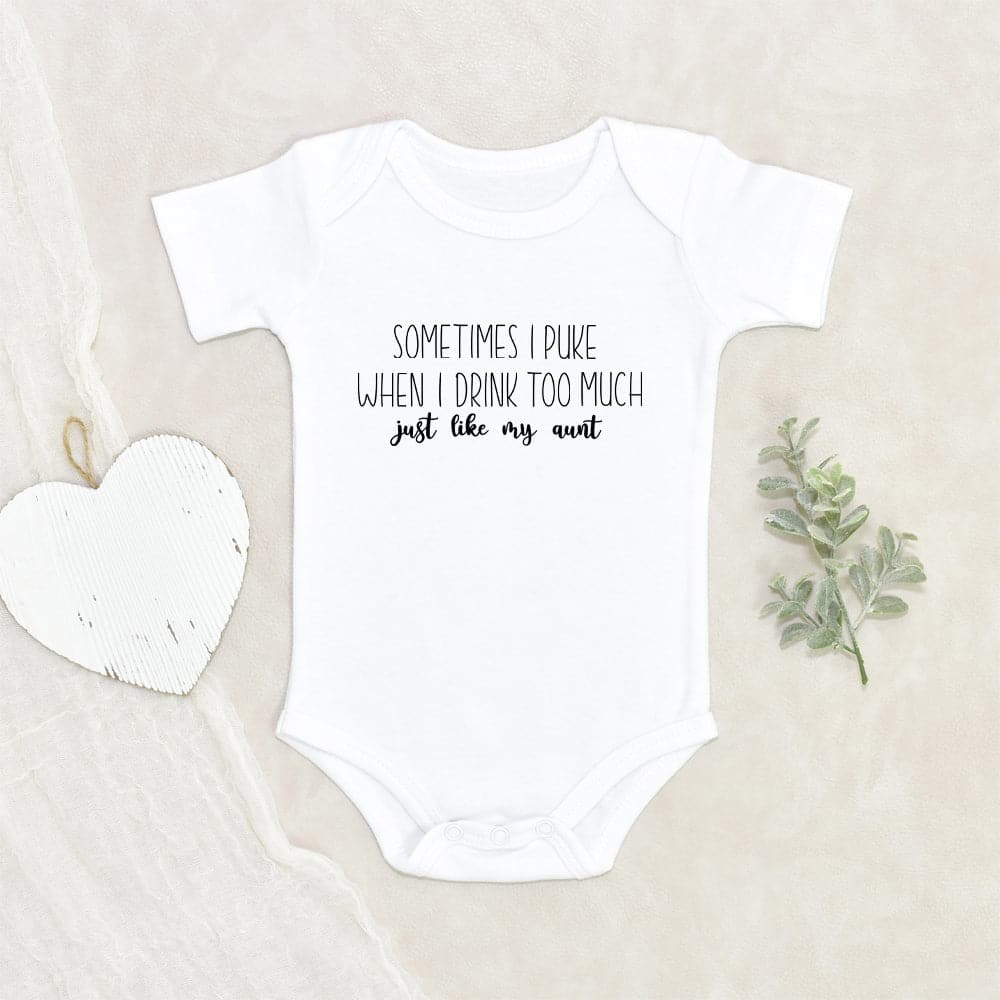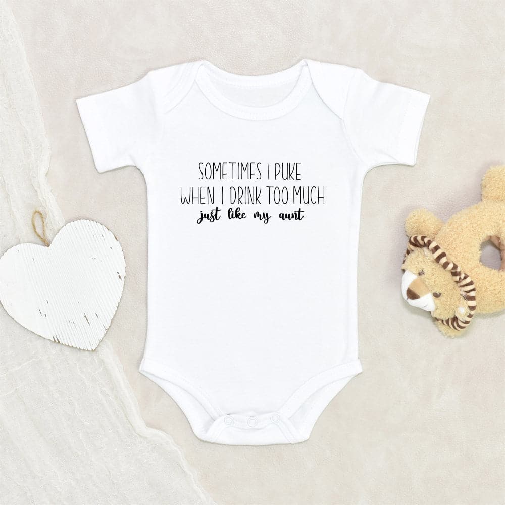 Newborn Baby Clothes Adorable Just Like My Aunt Baby Onesie Sometimes I Puke Just Like My Aunt Baby Onesie Unisex Baby Onesie Unique Baby Onesie