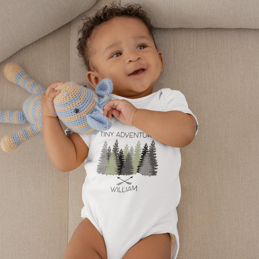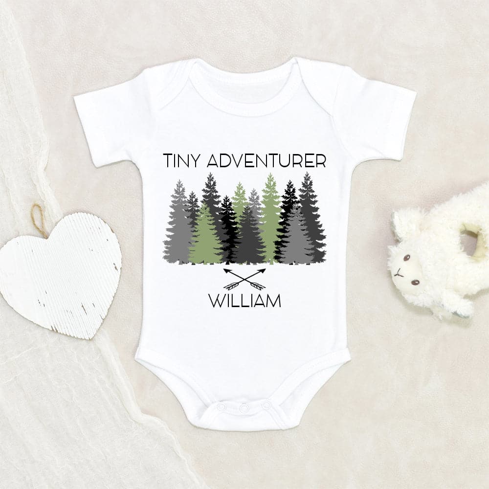 Custom Baby Shower Gift - Cute Baby Boy Clothes - Tiny Adventurer Personalized Onesie - Outdoorsy Hiking Onesie